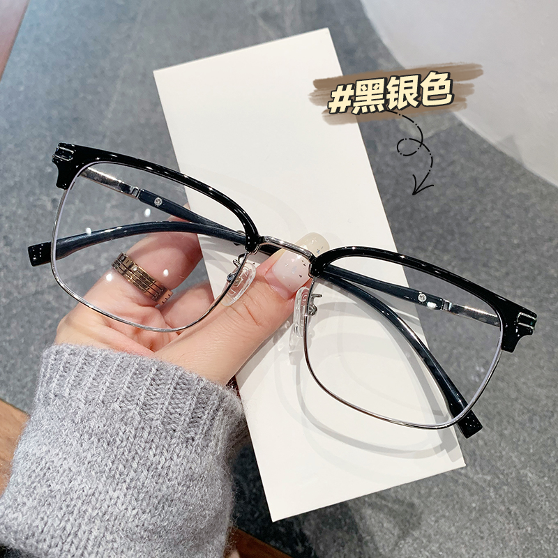 防蓝光近视眼镜女配镜韩版眉线有度数理工男痞帅半框大脸显瘦护眼