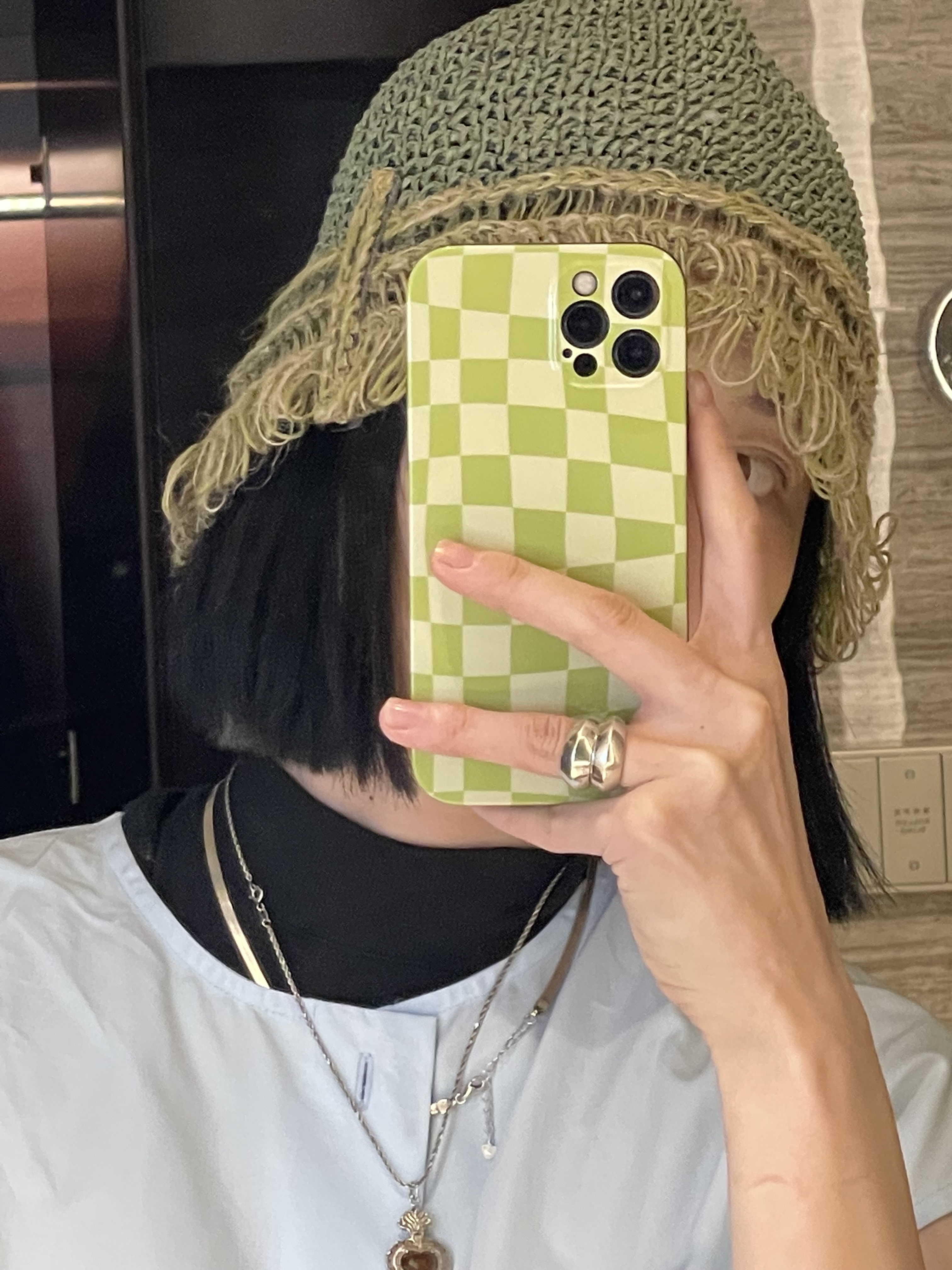 【适用于iphone17】【姜黄草芥绿】【原创】不规则棋盘格手机壳