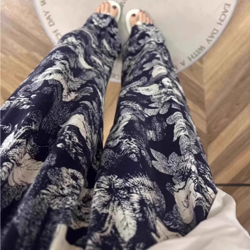 夏季棉绸睡裤女长裤居家阔腿裤花裤防晒可外穿休闲家居裤薄款印花