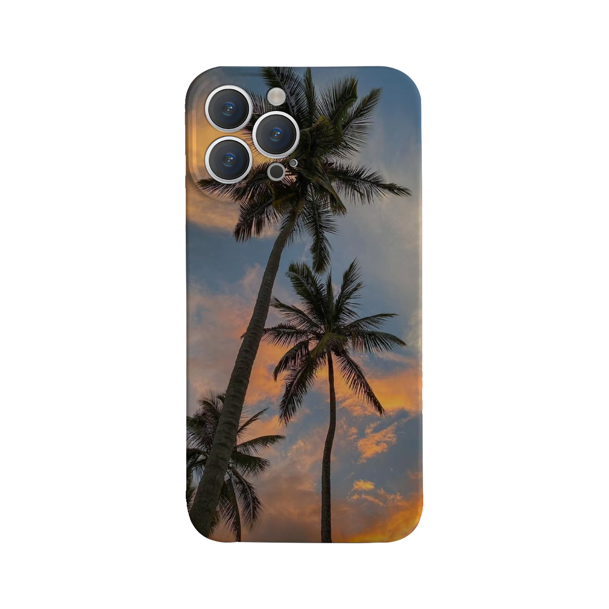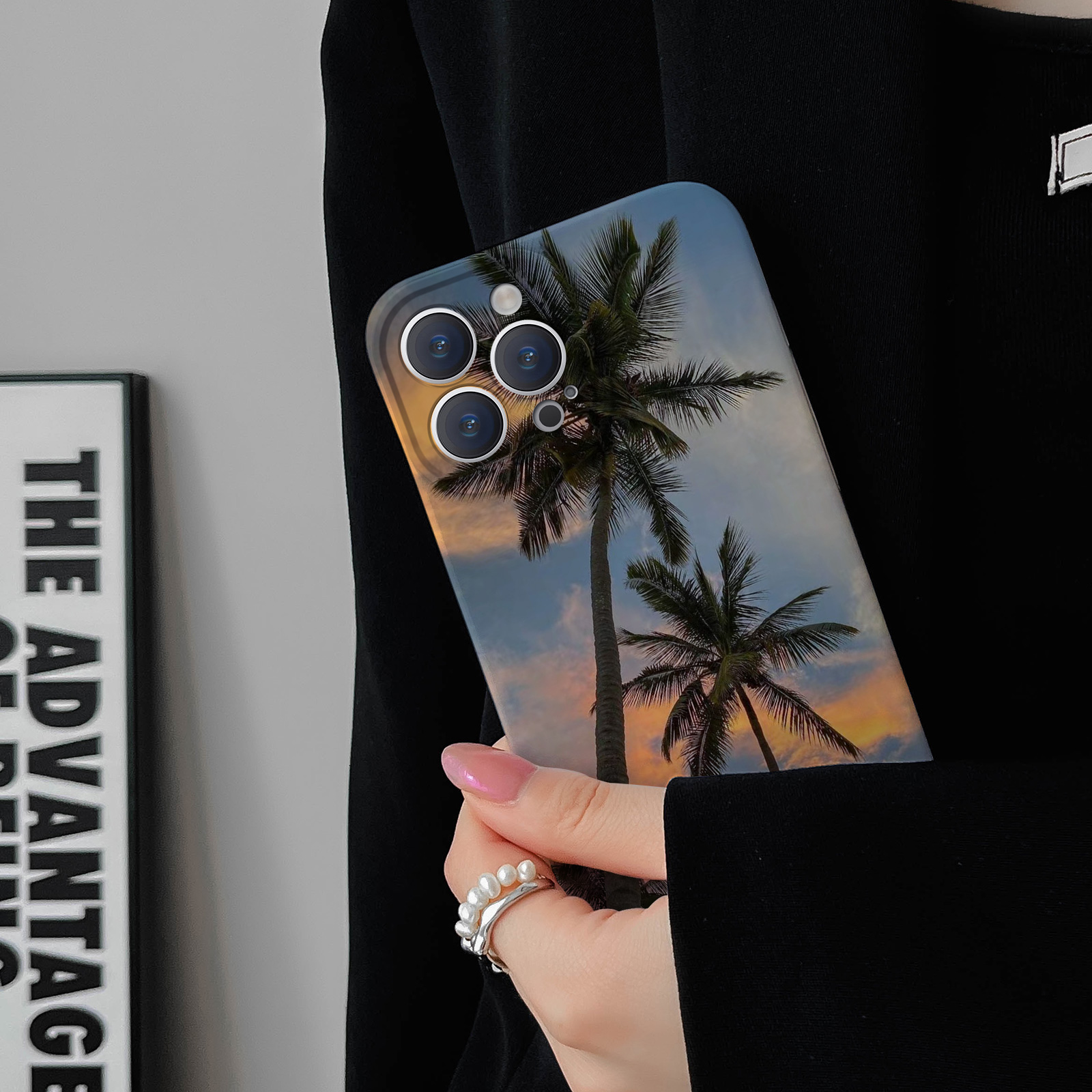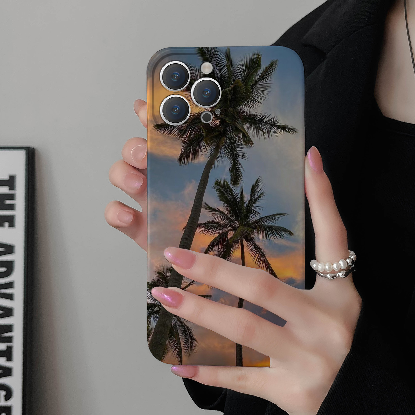 适用华为oppo苹果iqoo荣耀小米iphone17 16promax/15pro/14/13/12/mate70 60情侣手机壳plus夕阳白云椰树风景