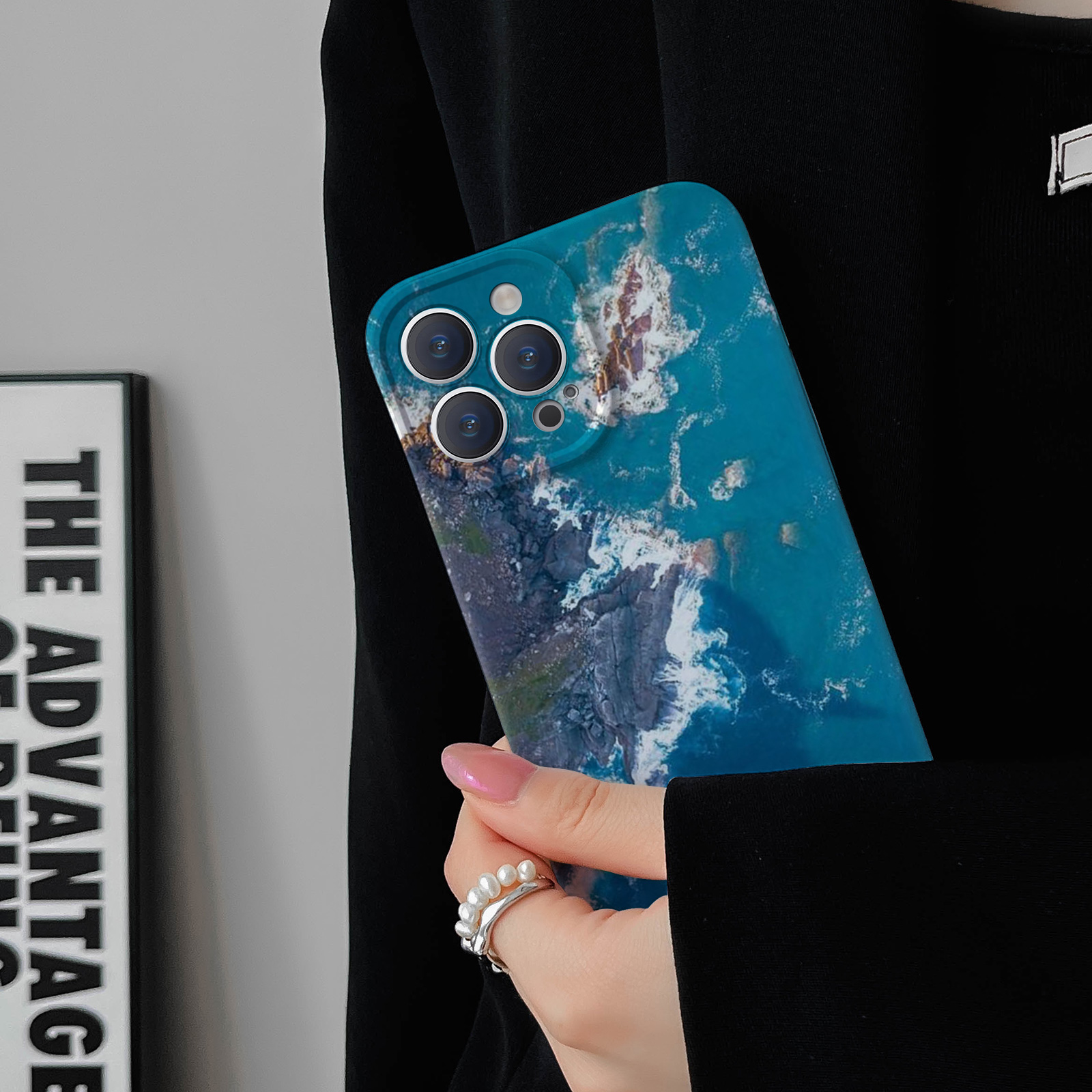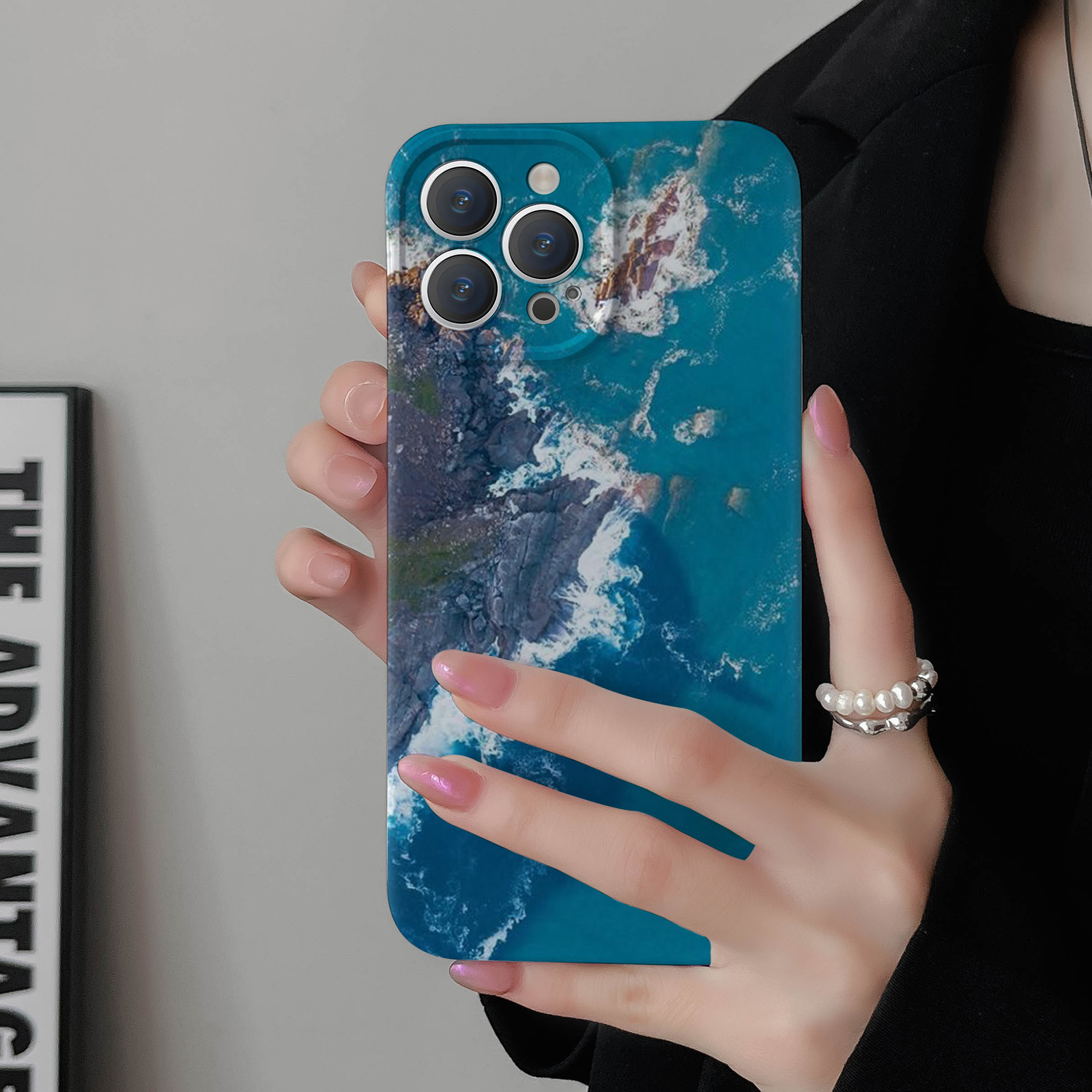 适用华为oppo苹果iqoo荣耀iphone17 15promax/16pro/14/13/12/mate70 60新款情侣手机壳plus抽象蓝色大海风景