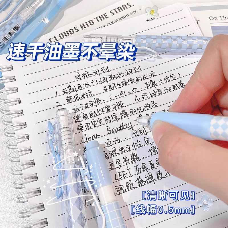 ST刷题笔高颜值按动中性笔圆珠笔黑色水笔小学生专用考试0.5速干碳素笔水性黑笔按压式做笔记签字笔非按斤卖
