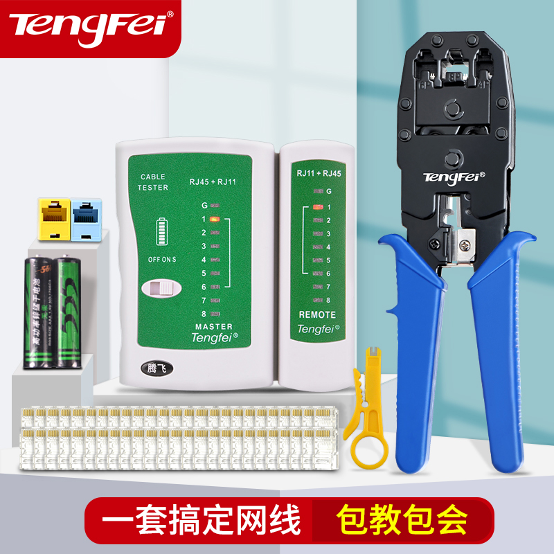 腾飞网线钳水晶头压线钳子家用接网线钳子多功能网络钳接头测试仪工具包套装五类六类七类宽带线制作剥线网钳
