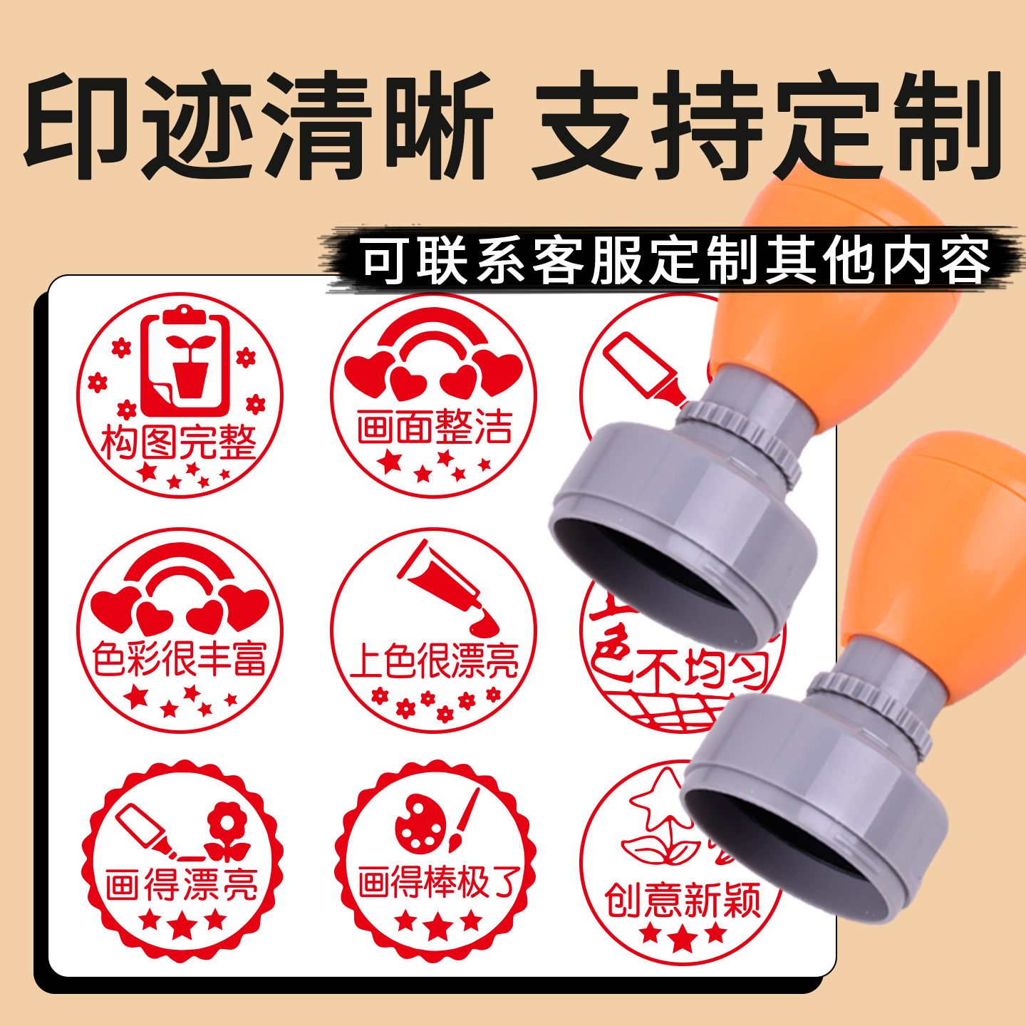 美术老师鼓励评语表扬绘画之星有创意教师印章定制光敏圆章奖励大尺寸教师绘画创意新颖教师批阅盖印印章定制