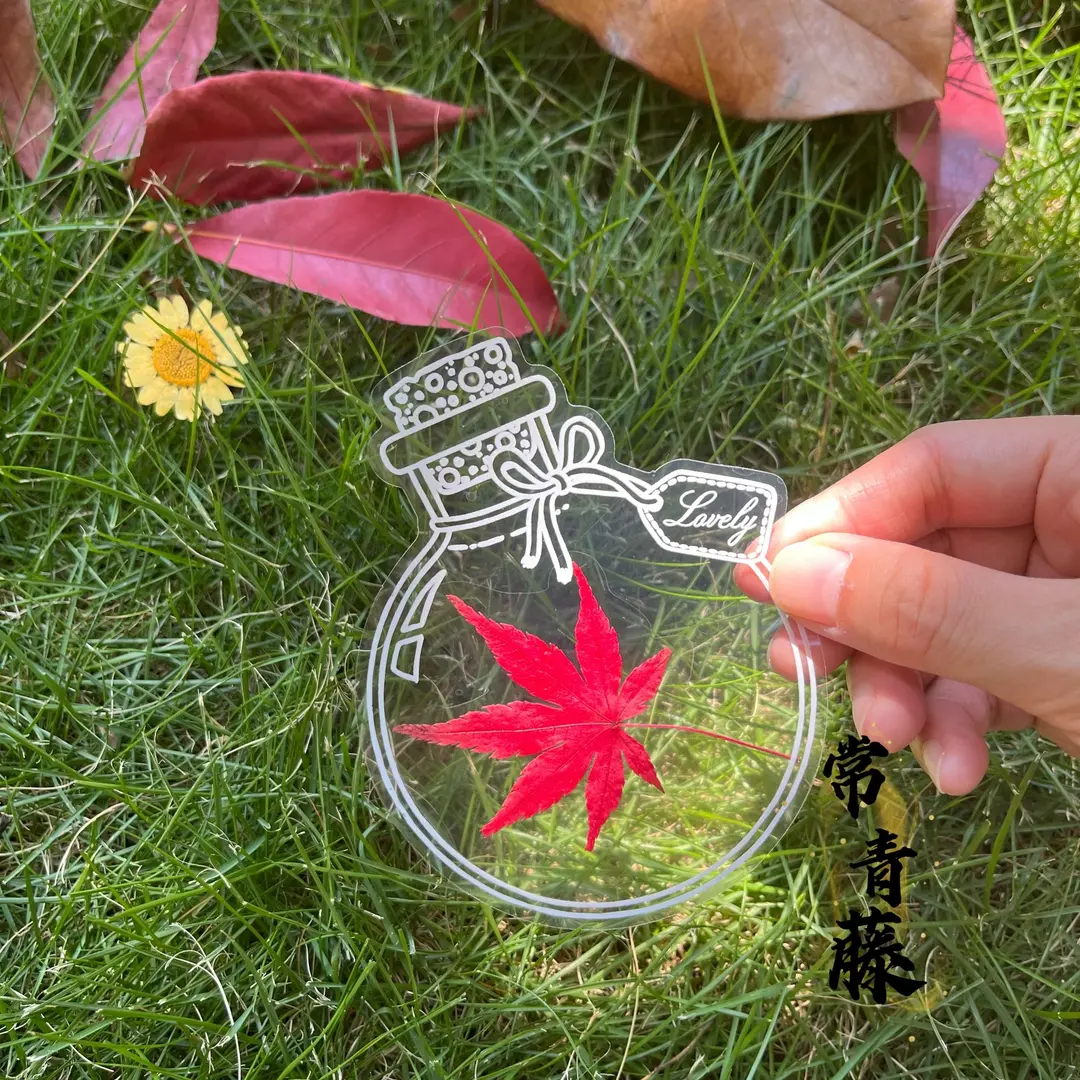 (大号)瓶子里的春天干花书签收集春天手工DIY透明贴纸树叶书签