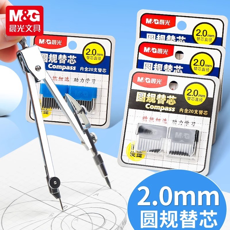 晨光2.0mm圆规铅芯金属圆规通用替换芯顺滑耐用不断芯绘图替芯