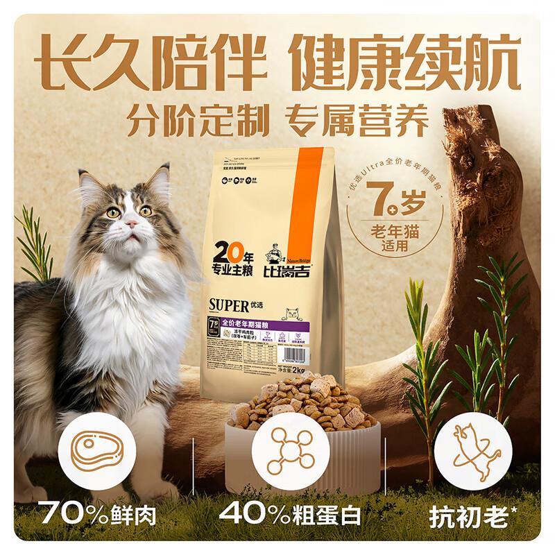 比瑞吉猫粮 毛球冻干肉粒全年龄段通用 优选全价老年猫粮2kg