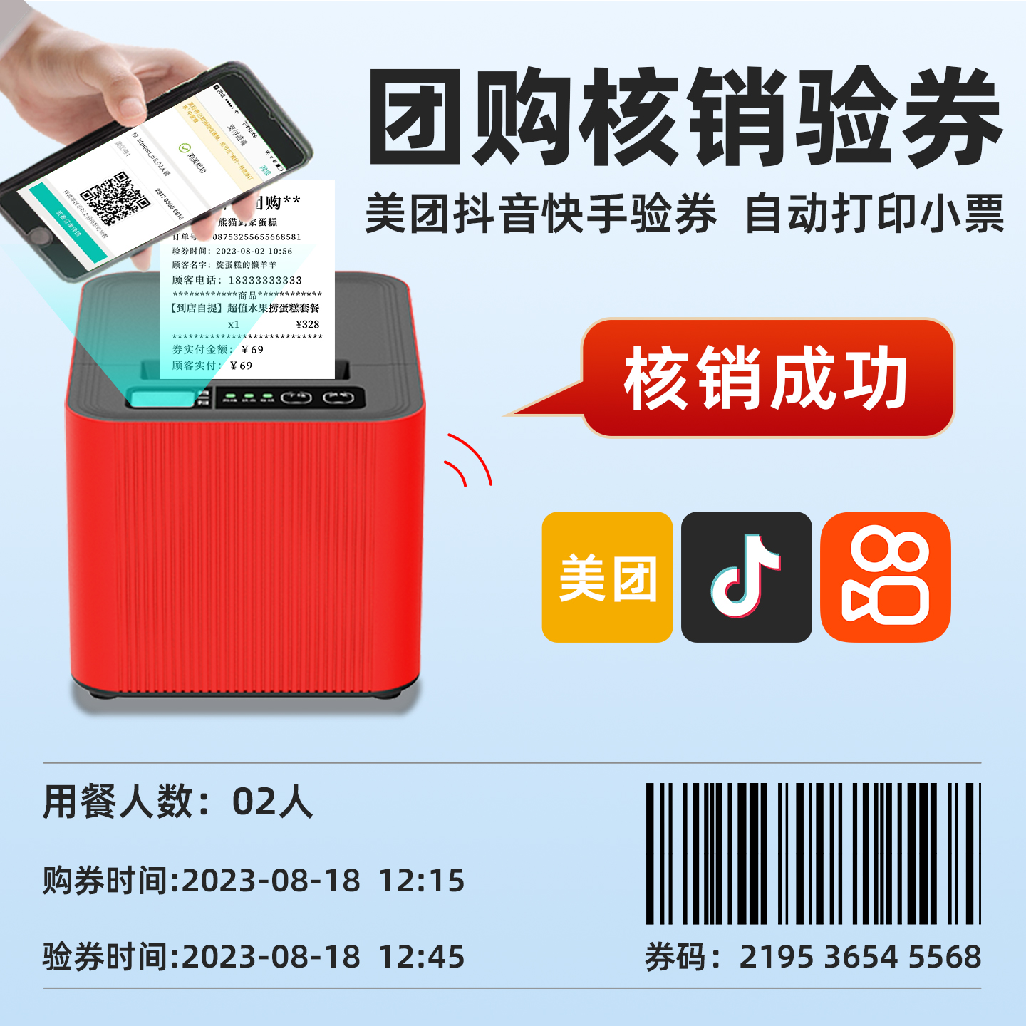 易联云k8美团外卖打印机自动接单WiFi饿了么语音小票机后厨餐饮出单核销机抖音京东外卖打印机出餐宝一体机