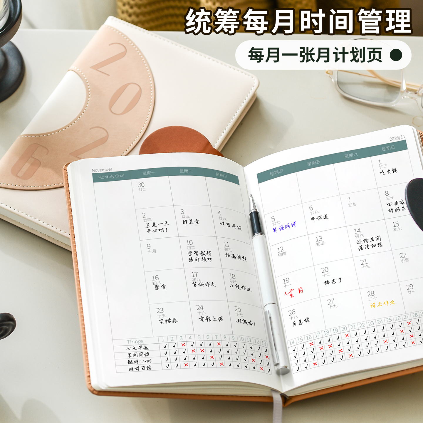 2026年日程本周计划本一周两页定制可印logo效率手册365天自律打卡年日历办公待办工作记录记事a5笔记本本子