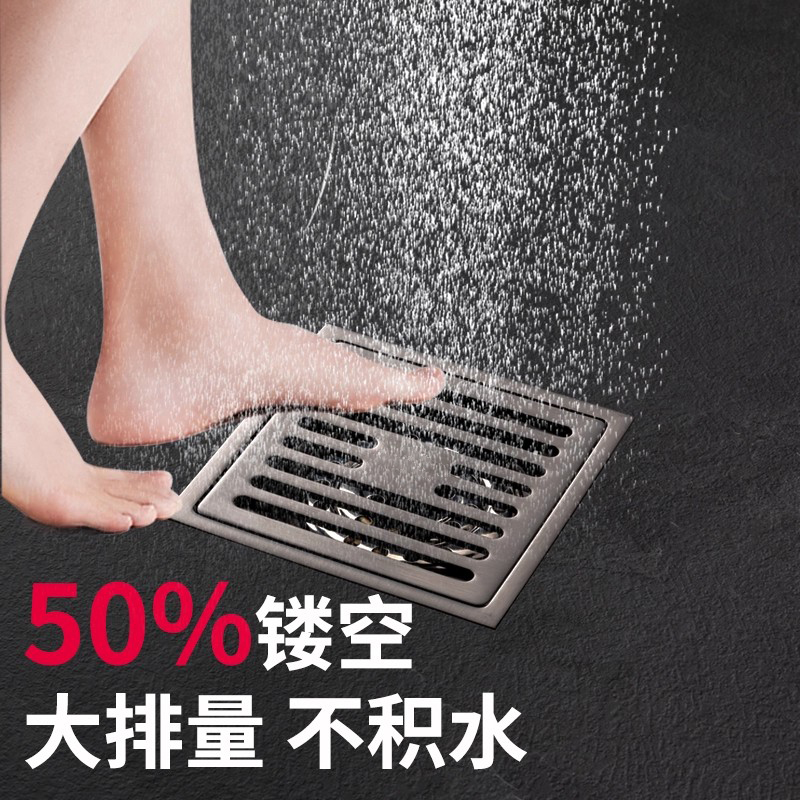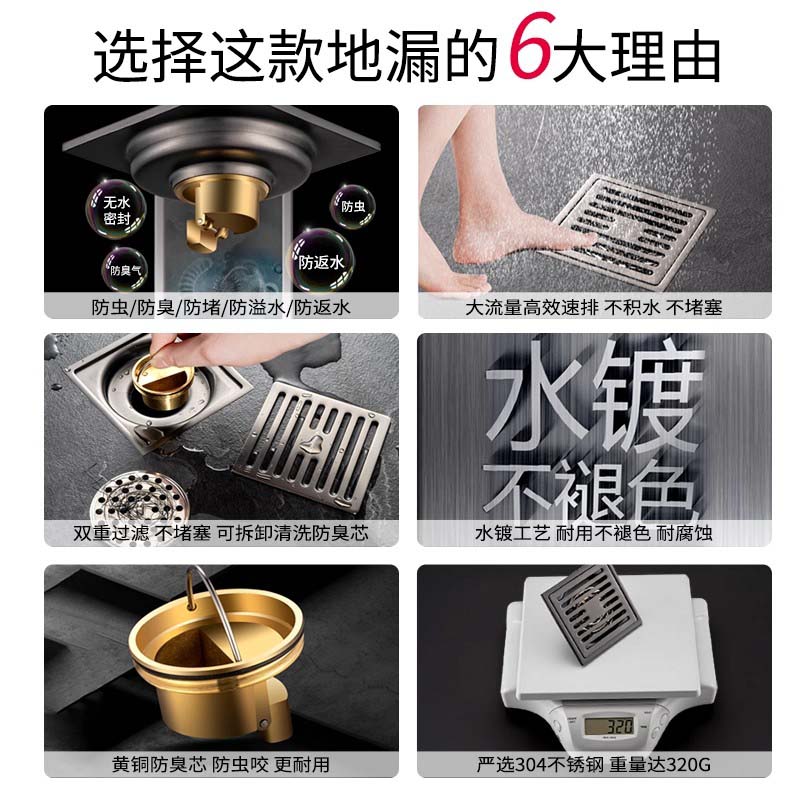 枪灰色加厚不锈钢地漏防臭器卫生间淋浴室洗衣机下水道全铜芯通用