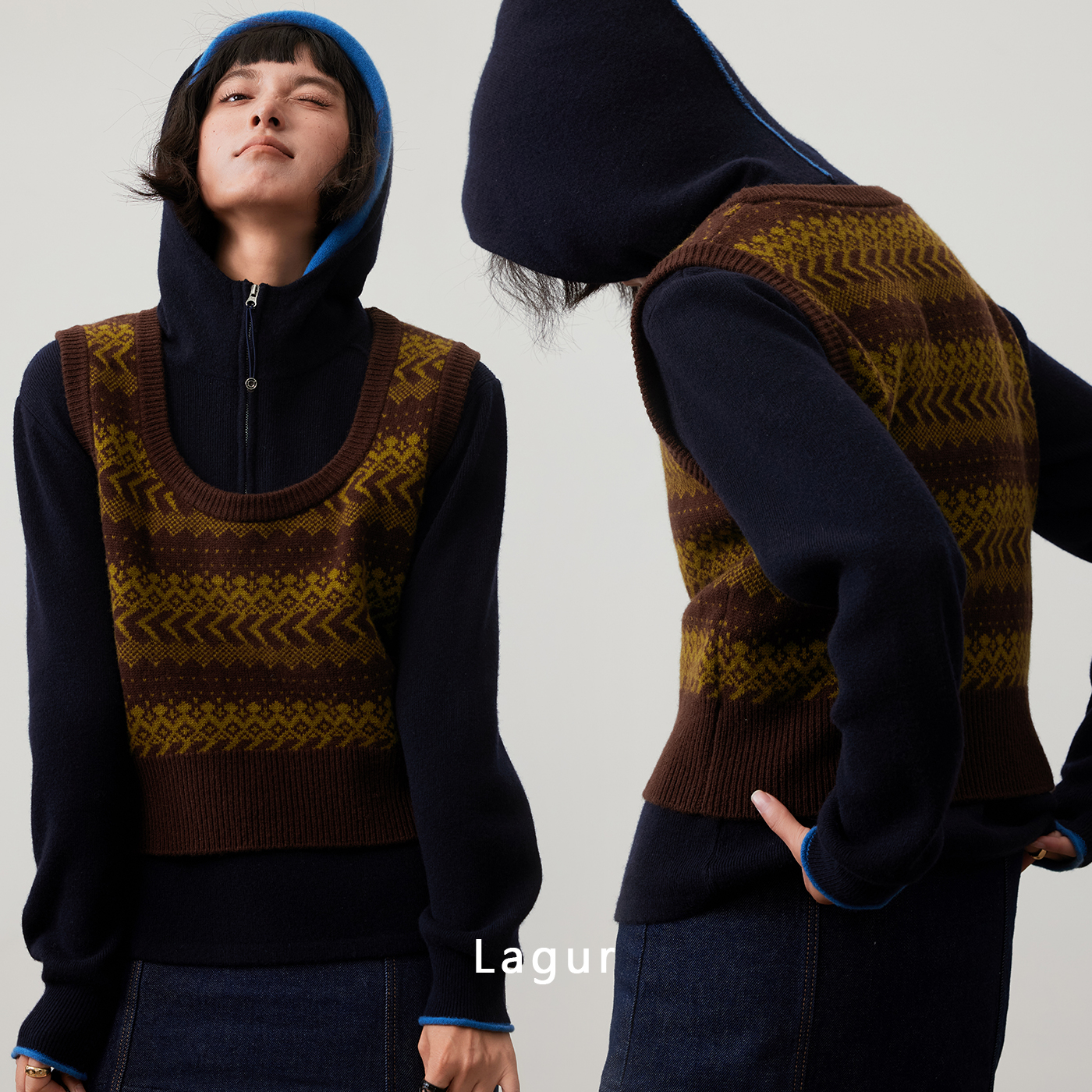 Lagur感受历史的温度~100%美利奴羊毛费尔岛马甲复古提花针织背心