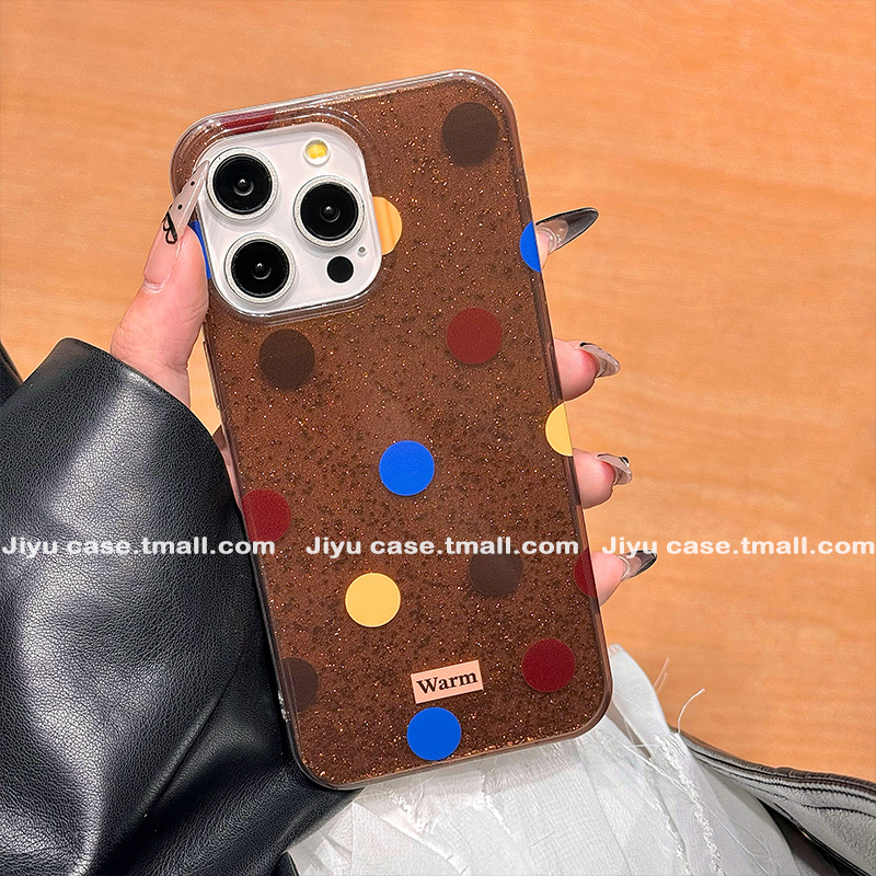 秋冬复古高级感彩色波点适用苹果16promax手机壳iphone15新款16闪粉16pro韩风14pm简约15pro带挂绳13全包外壳
