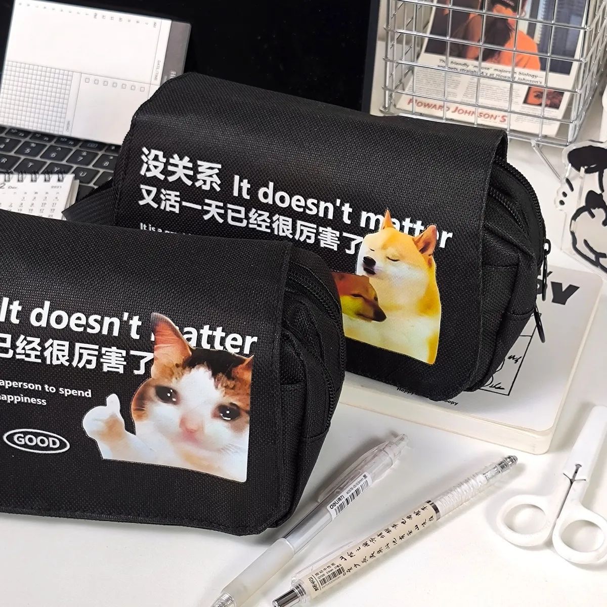 没关系双笔袋搞怪手提翻盖多层收纳袋超大容量学生桌面整理文具盒