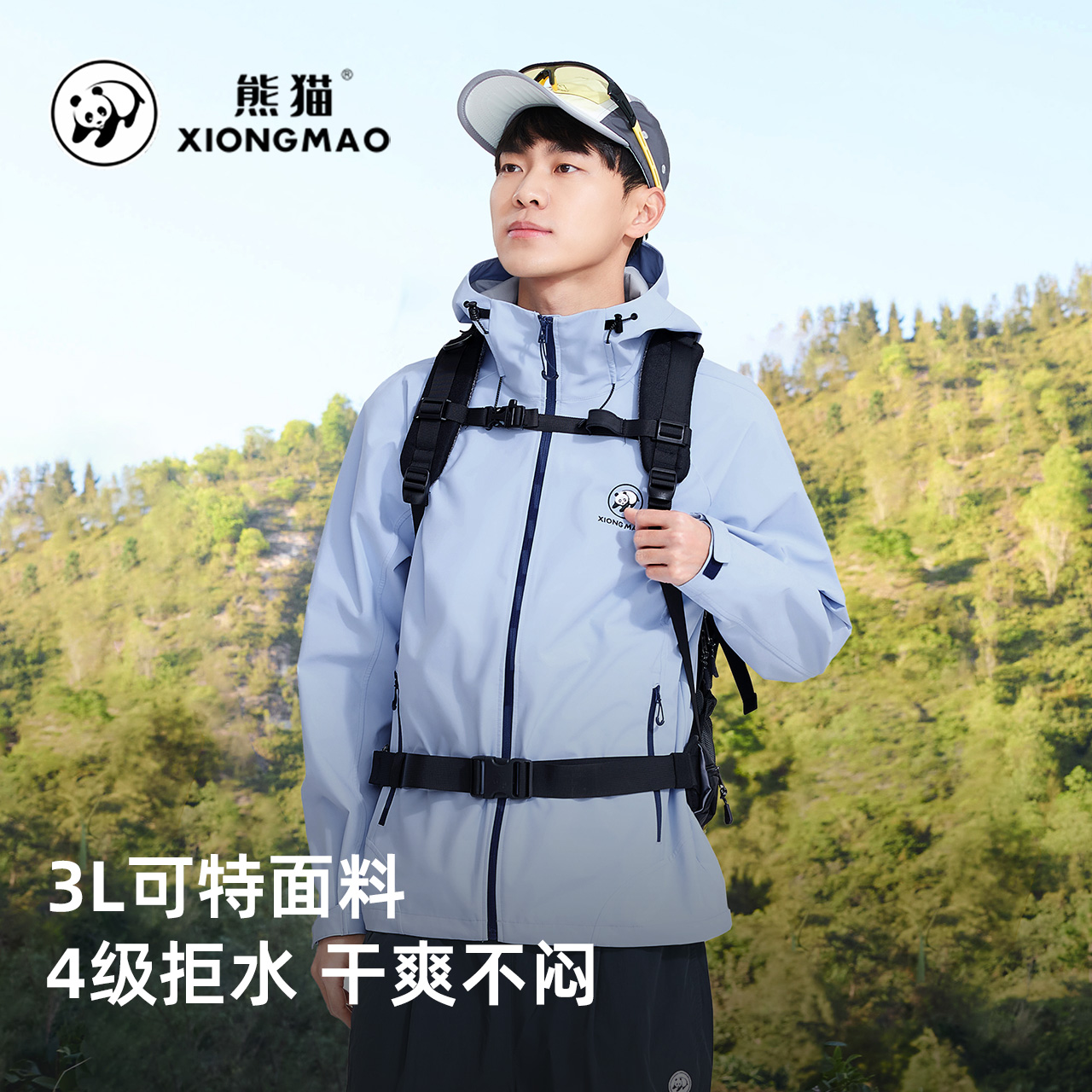 循野熊猫夹克冲锋衣男装外套2025新款拼色风衣防风雨骑行登山服