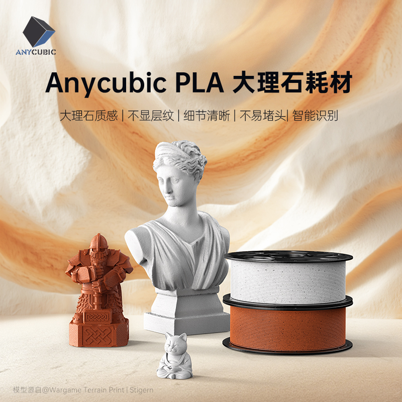 Anycubic3D打印耗材PLA1kg 1.75mm 可拆卸盘大理石耗材FDM大环保整齐排线快速打印不易堵头 RFID智能参数识别