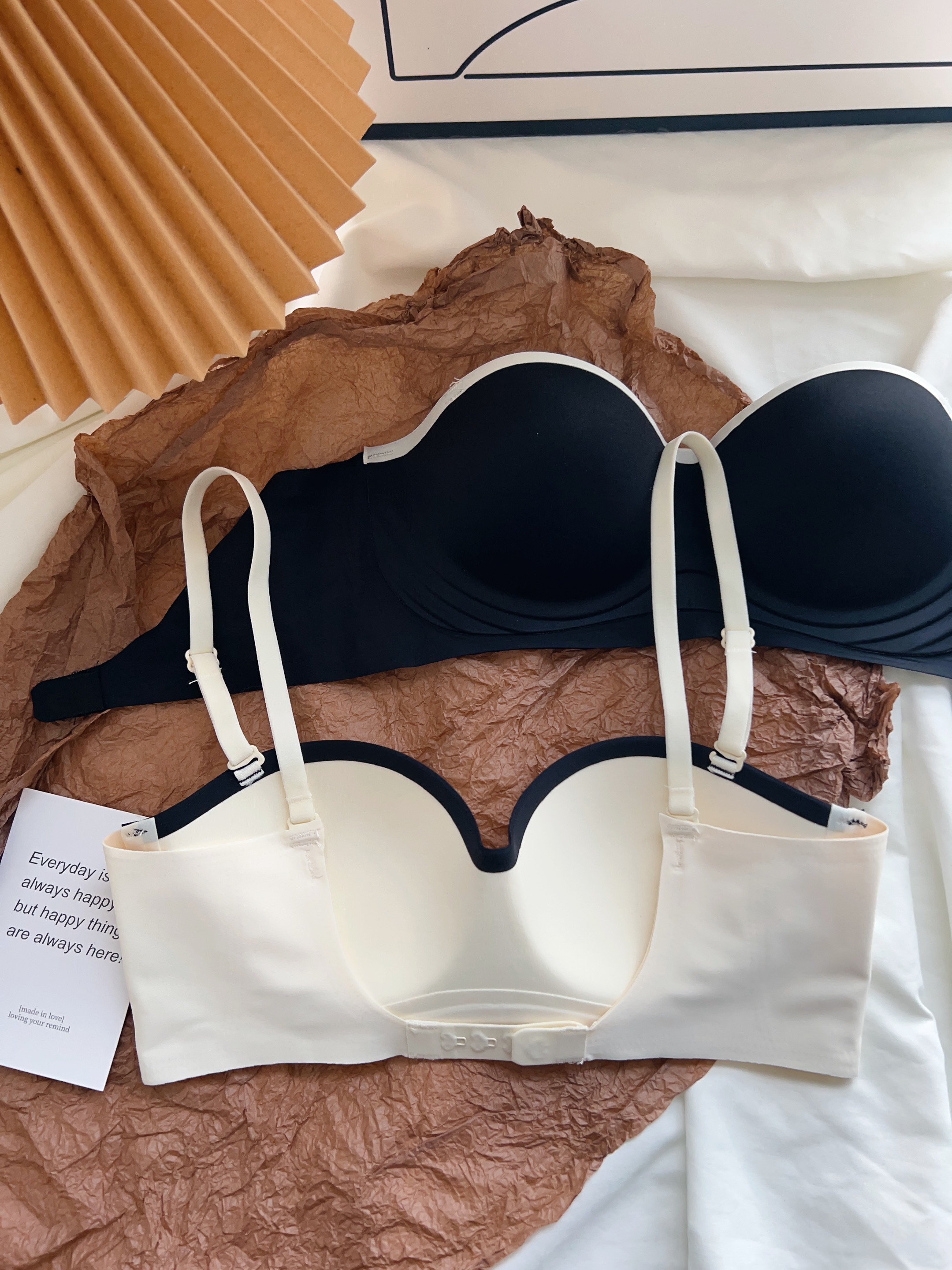 撞色无痕半杯内衣女防滑小胸聚拢显大收副乳外扩无钢圈美背文胸罩
