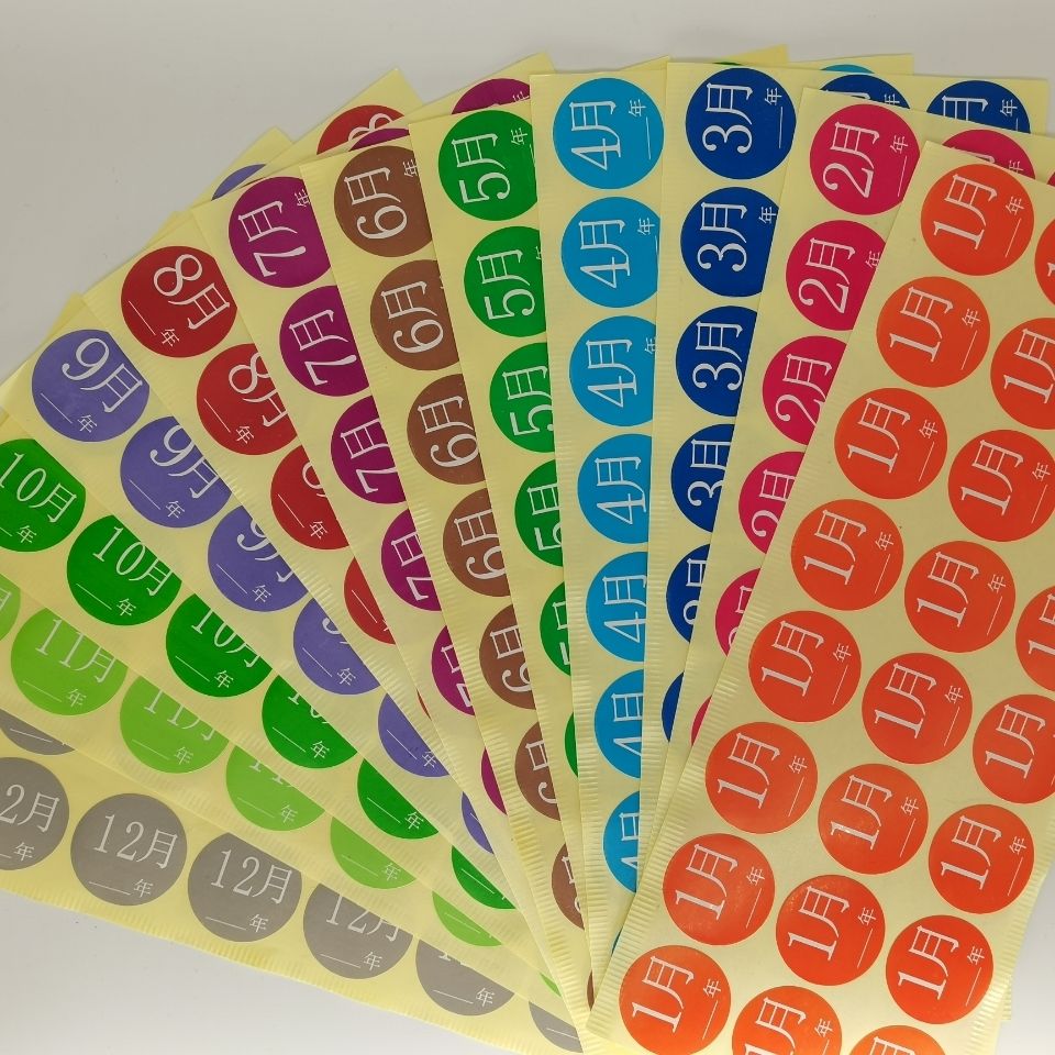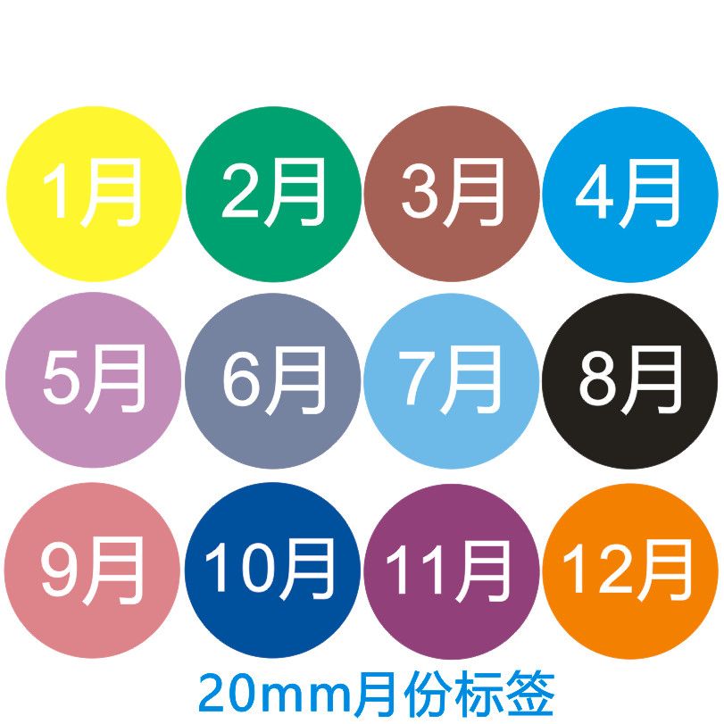 50mm彩色月份数字贴纸 1-12月数字分类标签不干胶 圆形月份标签贴