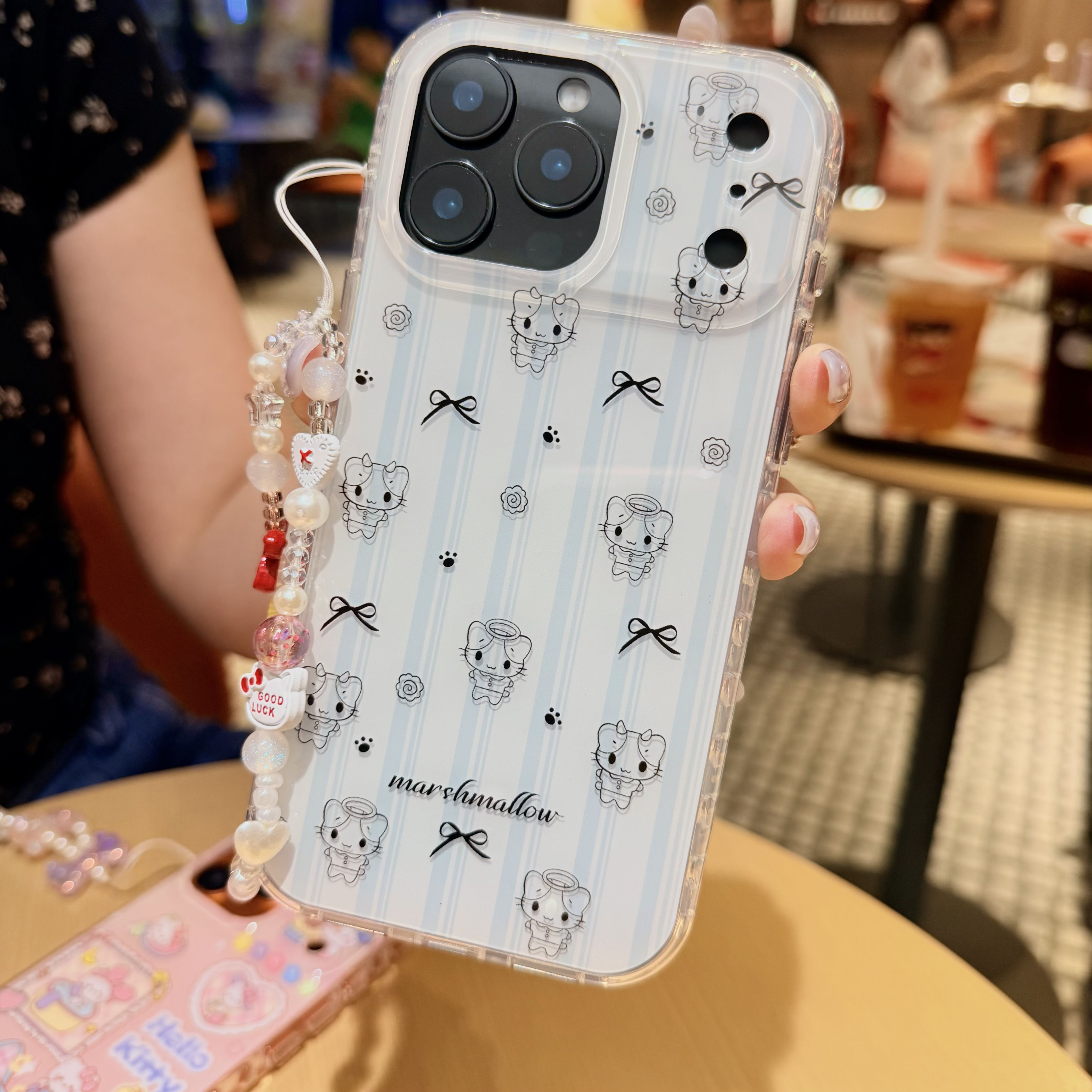 淳于亦ins风可爱卡通粉色凯蒂猫苹果17promax手机壳15pro全包圆边爱心硅胶软壳14/13清新蓝条纹蝴蝶结16保护