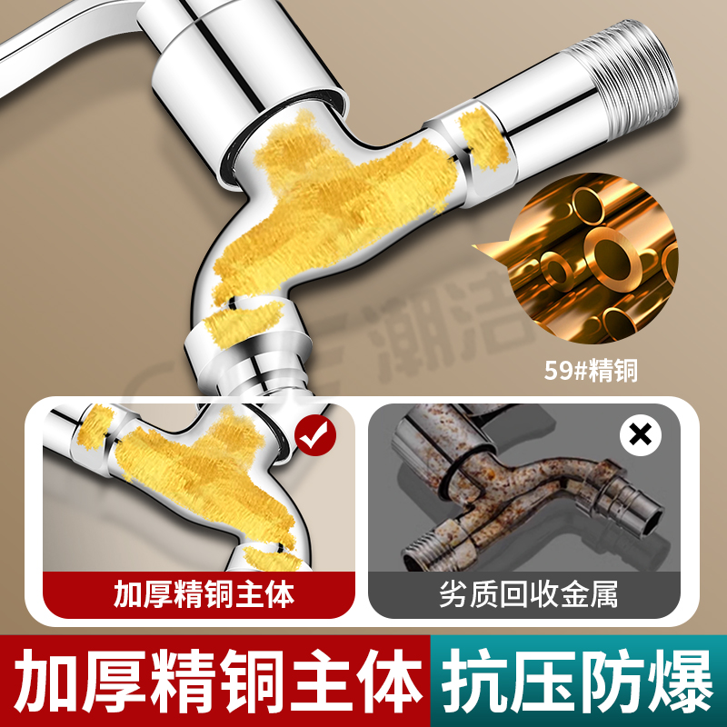 全铜洗衣机水龙头大出水自动止水阀专用接头防脱落水嘴角阀家用