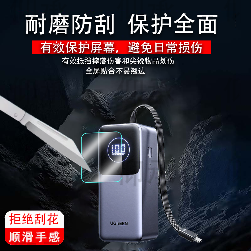 适用于绿联PB723充电宝贴膜PB770自带线数移动电源保护膜25款能量湃Pro冲电宝屏幕膜快充130W非钢化膜200W