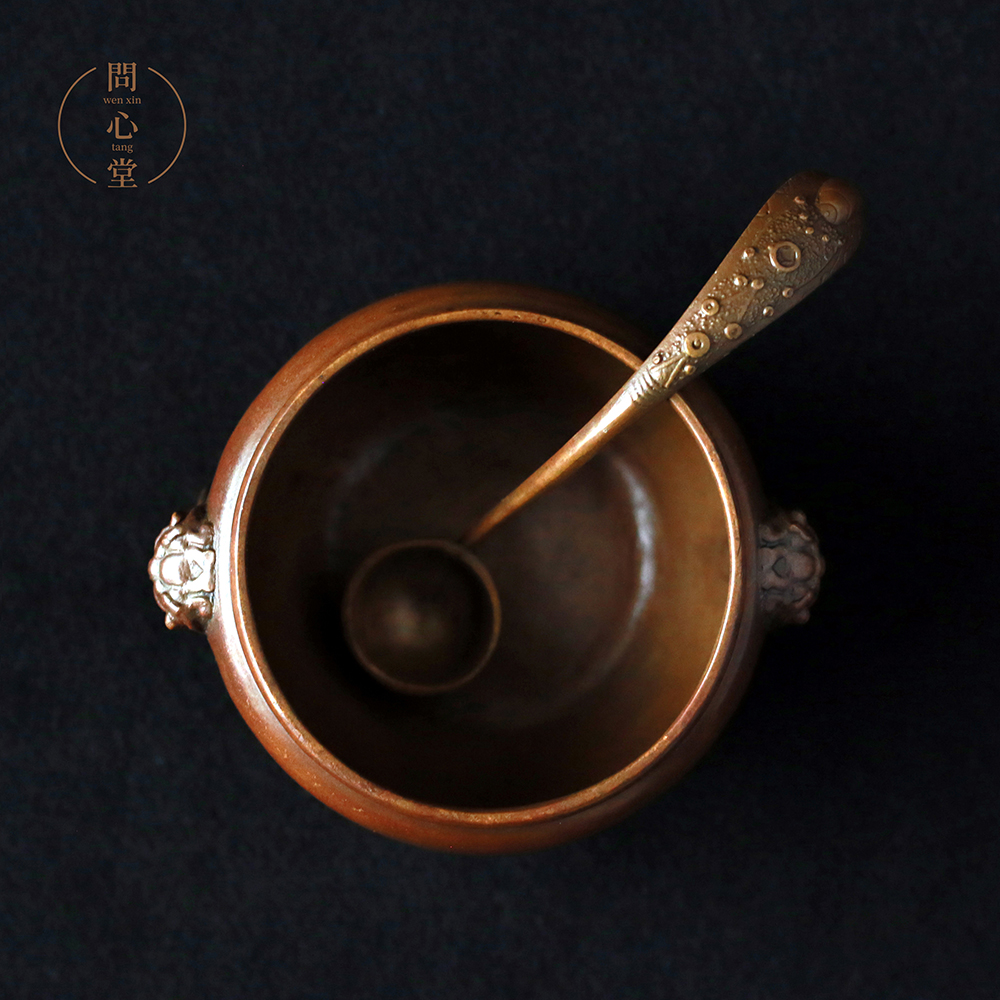 问心堂铜勺文房四宝蝠纹青铜勺水盂砚台磨墨加水书法研墨专用水勺