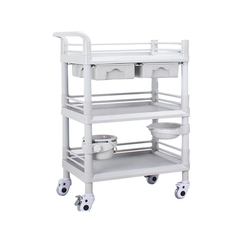 海斯迪克HK-5176轻音换药推车医院治疗工具车ABS塑料美容车二层中