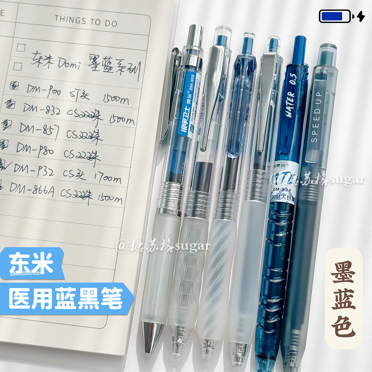 东米蓝黑笔医用按动式墨蓝色中性笔医生护士处方笔速干墨兰签字笔