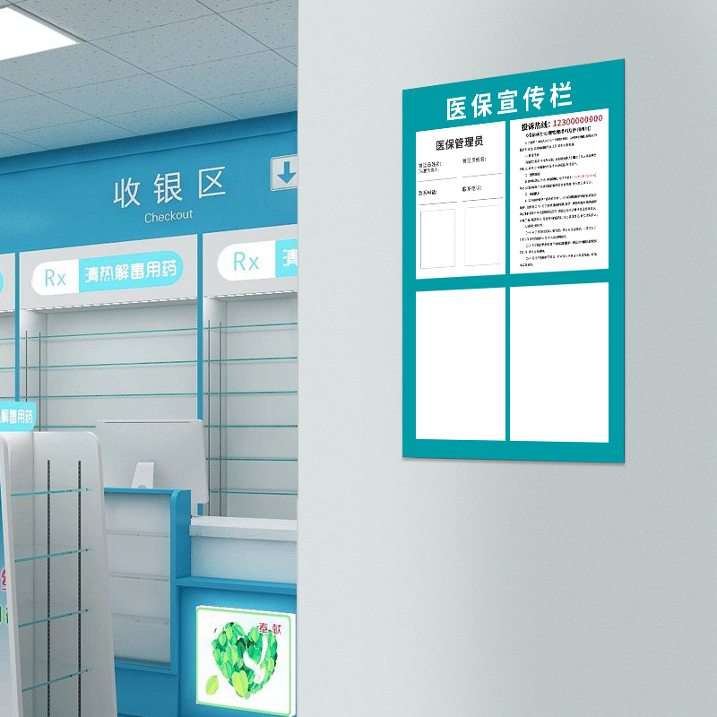 医保宣传栏公示栏提示牌医院药店药房照片上墙公示管理人员信息展示牌诊所门诊口腔牙科医疗机构医保信息上墙