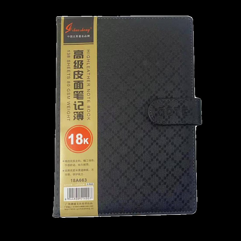 潮盛高级皮面扣子记事本商务黑皮办公笔H记工作会议记录简约手账