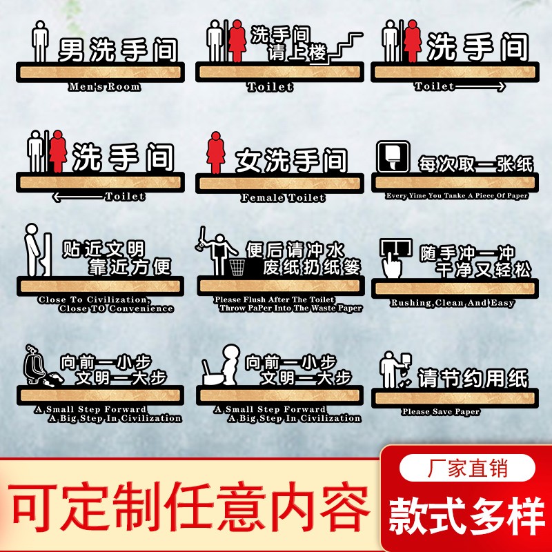 亚克力洗手间指示牌男女卫生间标识牌办公室门w牌定制立体创意禁
