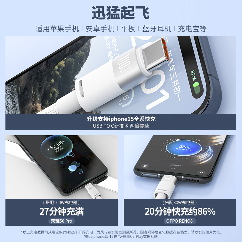 二合一充电器一拖二快充数据线多功能车载充电线1分2适用苹果16iphone15华为双typec手机USB插头超级闪充套装