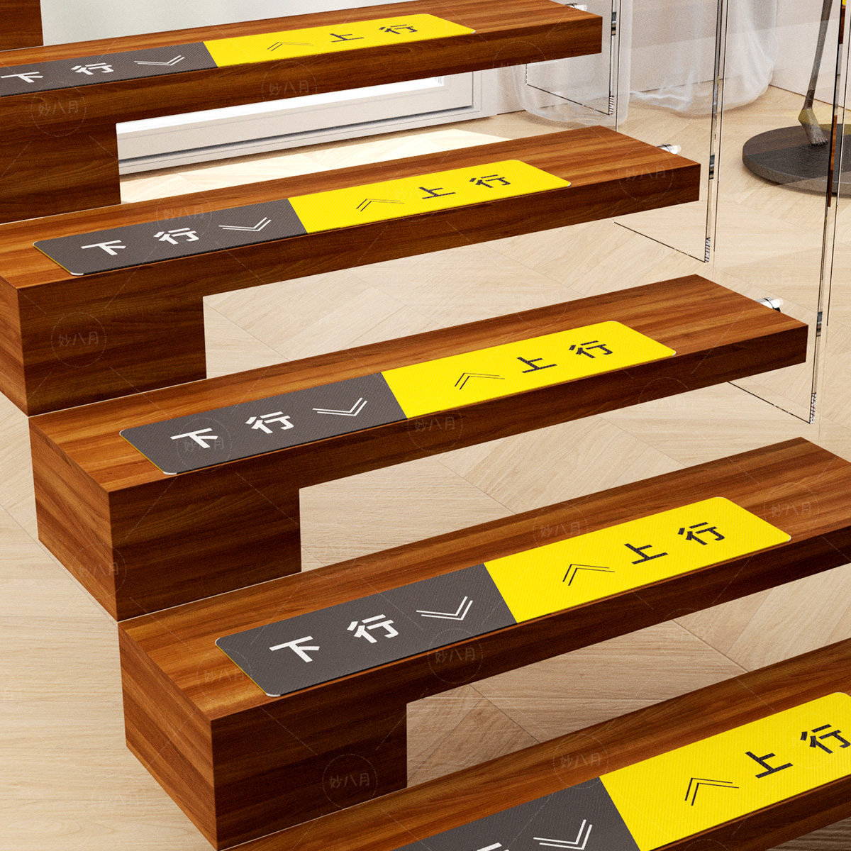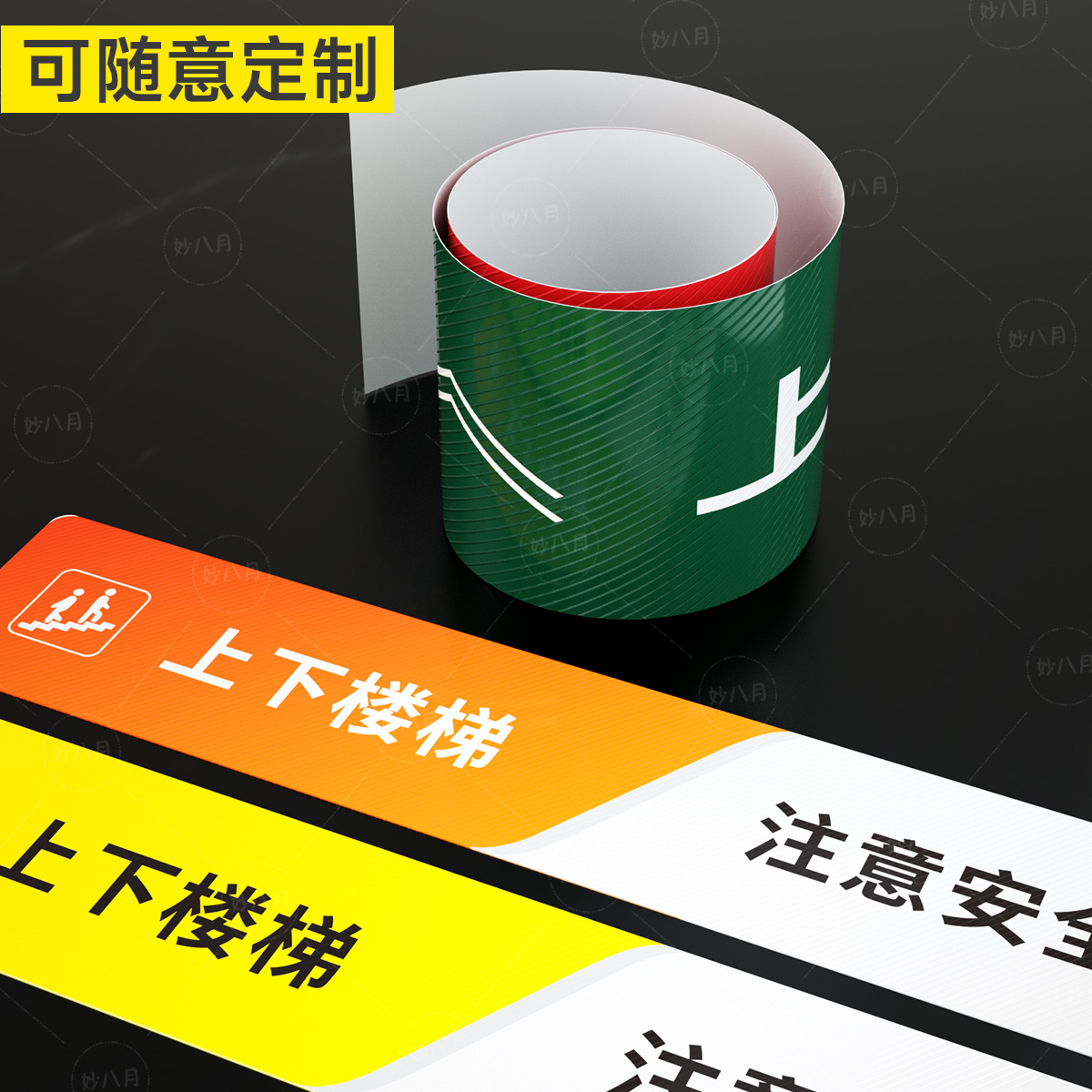 上下楼梯请注意安全标识贴温馨提示小心台阶地贴提示牌创意商场医院学校办公楼警示牌 上行下行台阶地贴定制
