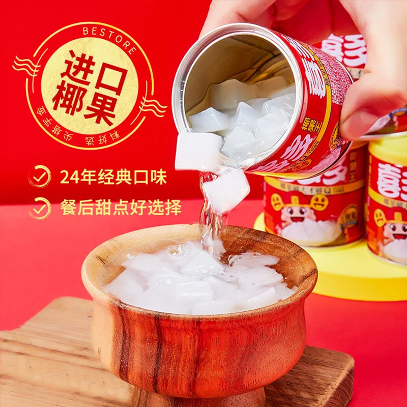 喜多多椰果王什锦椰子肉仙草丸子整箱旗舰店同款水果黄桃罐头饮料