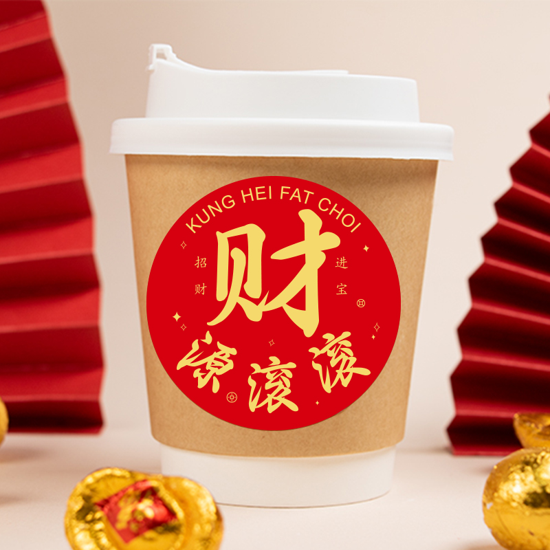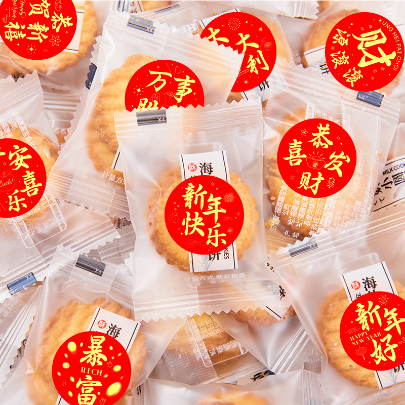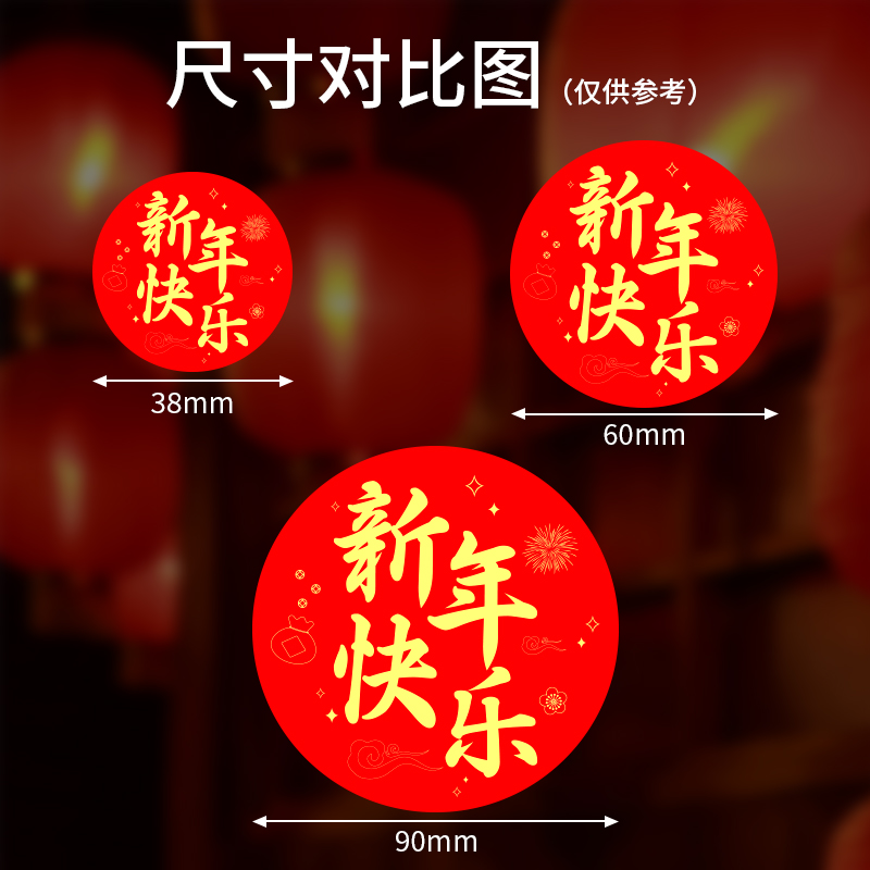 2024新年快乐贴纸吉祥如意暴富春联红包封口贴圆形自粘不干胶标签