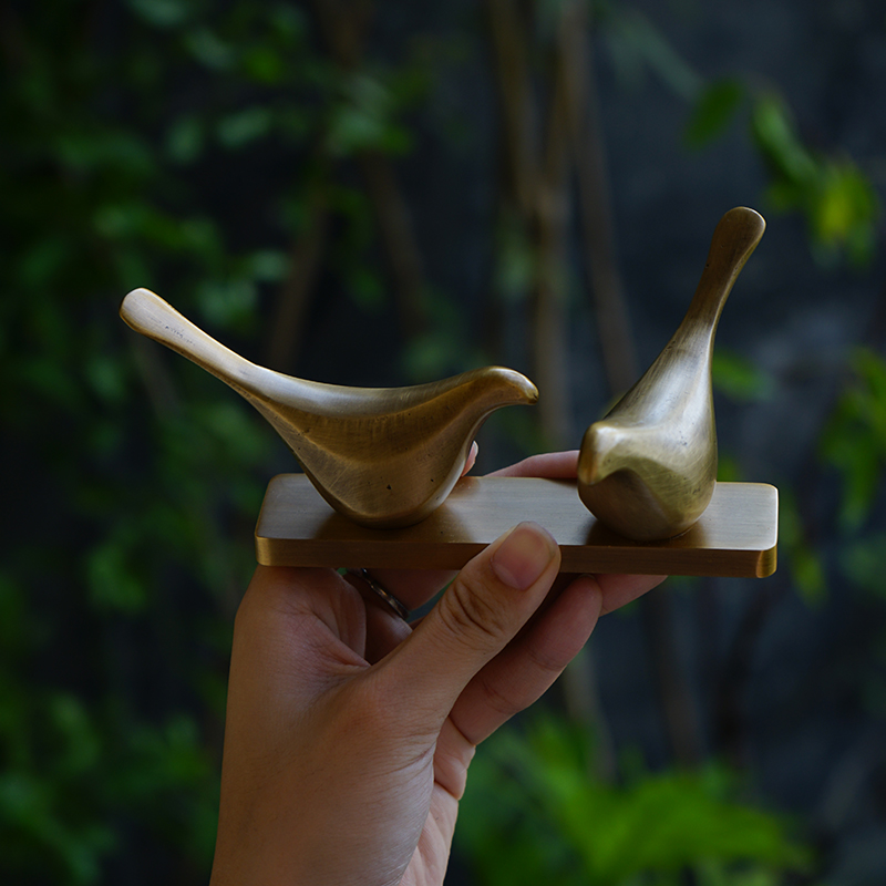 铜无境原创新中式黄铜喜鹊镇纸笔搁国画书法用品摆件长辈老师礼品