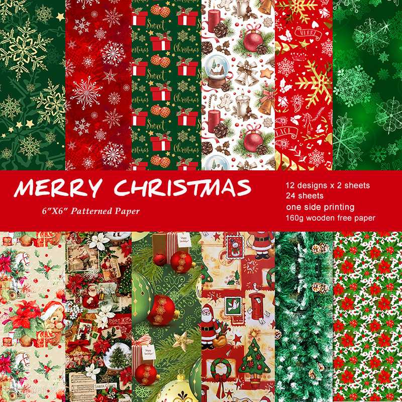 新款直销DIY手工6寸复古圣诞节手账素材纸图案纸礼品包装纸ins风