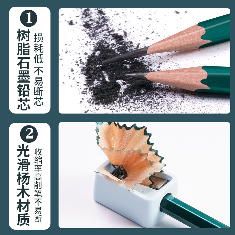 Nusign纽赛小绿杆黑木铅笔hb小学生专用一二年级学习用品正姿高颜值加粗铅芯无铅毒得力书写绘画矫姿素描初学