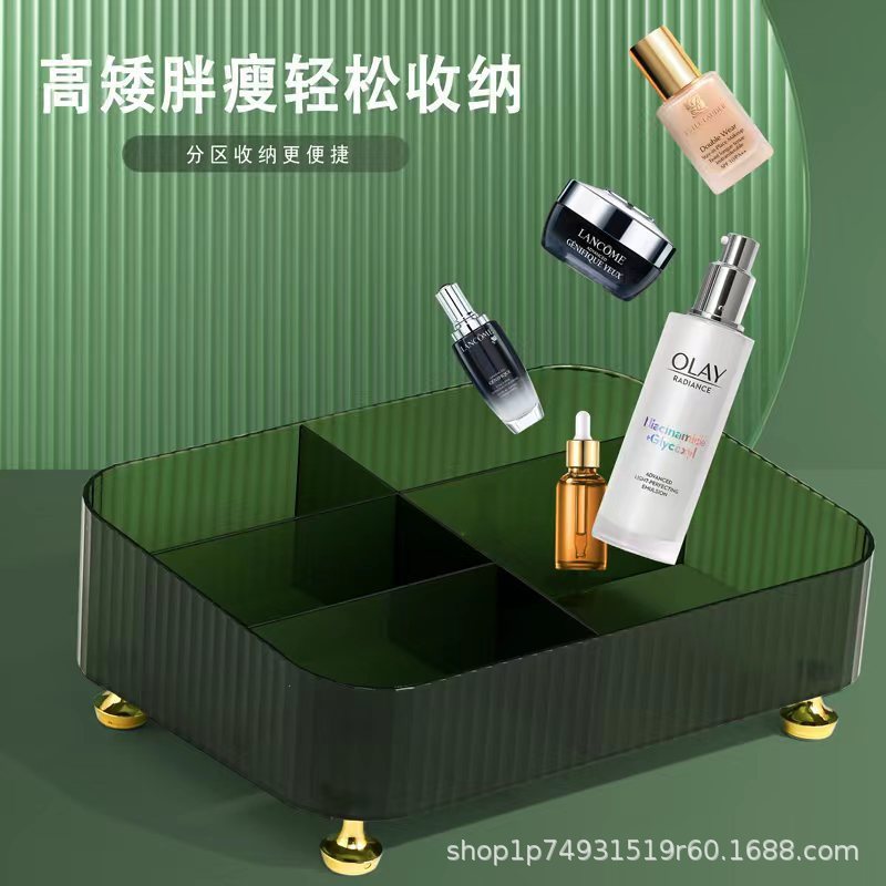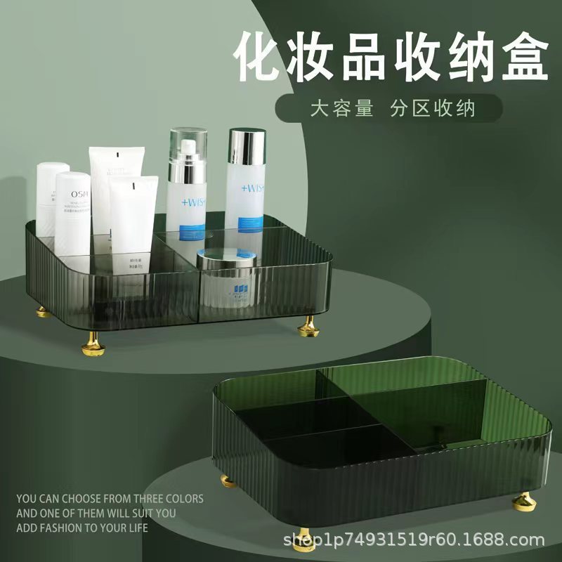 轻奢五格PET收纳盒床头口红护肤品化妆分格整理盒卫生间洗漱台面