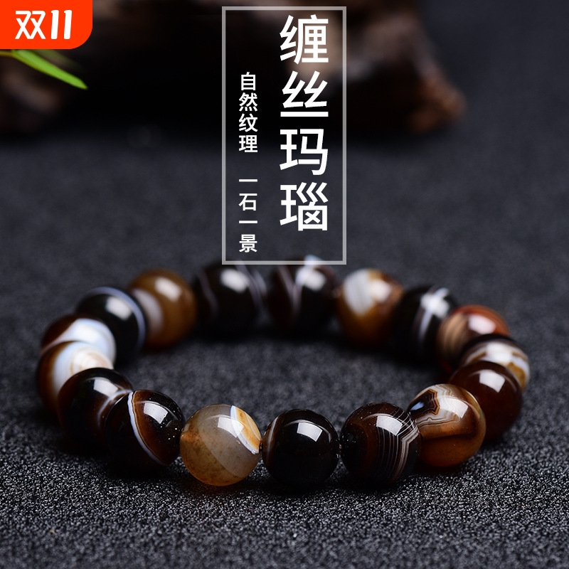 七夕情人节送男友女友黑条纹玛瑙手链男女款情侣水晶玉髓单圈手串