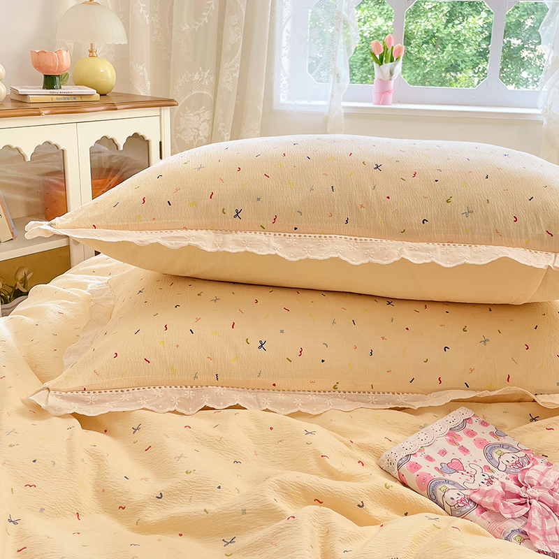 A类全棉花边四件套纯棉双层纱被套床单被罩床笠学生宿舍三件套件4
