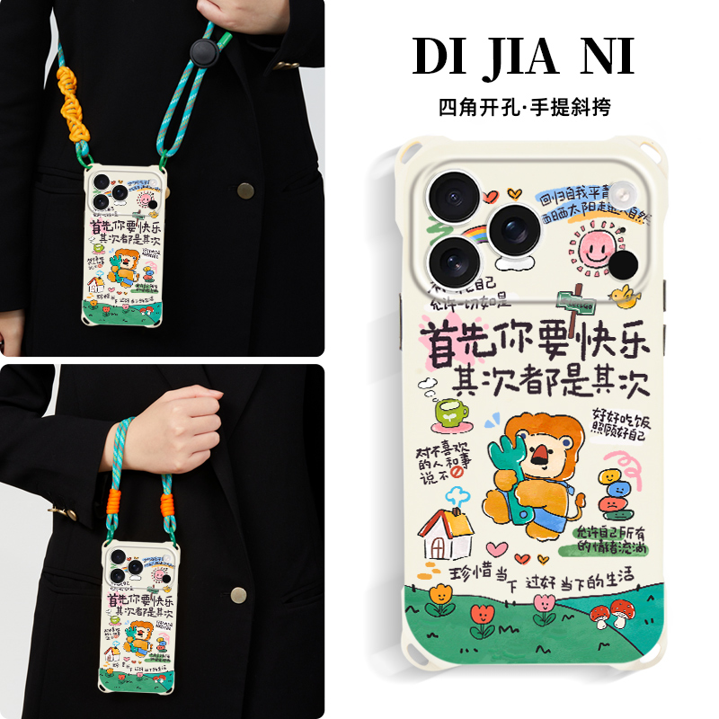 首先要快乐适用iPhone17promax手机壳挂绳手腕iphone16pro斜挎新款15可背挂脖14高级防摔13手提背带Air硅胶12