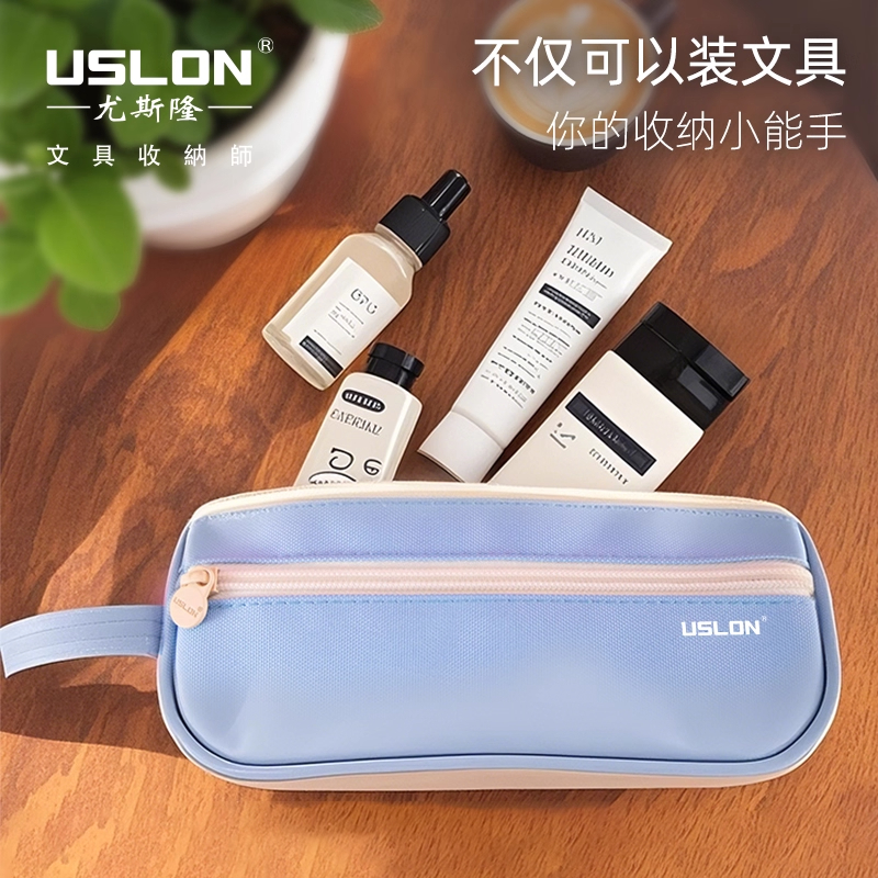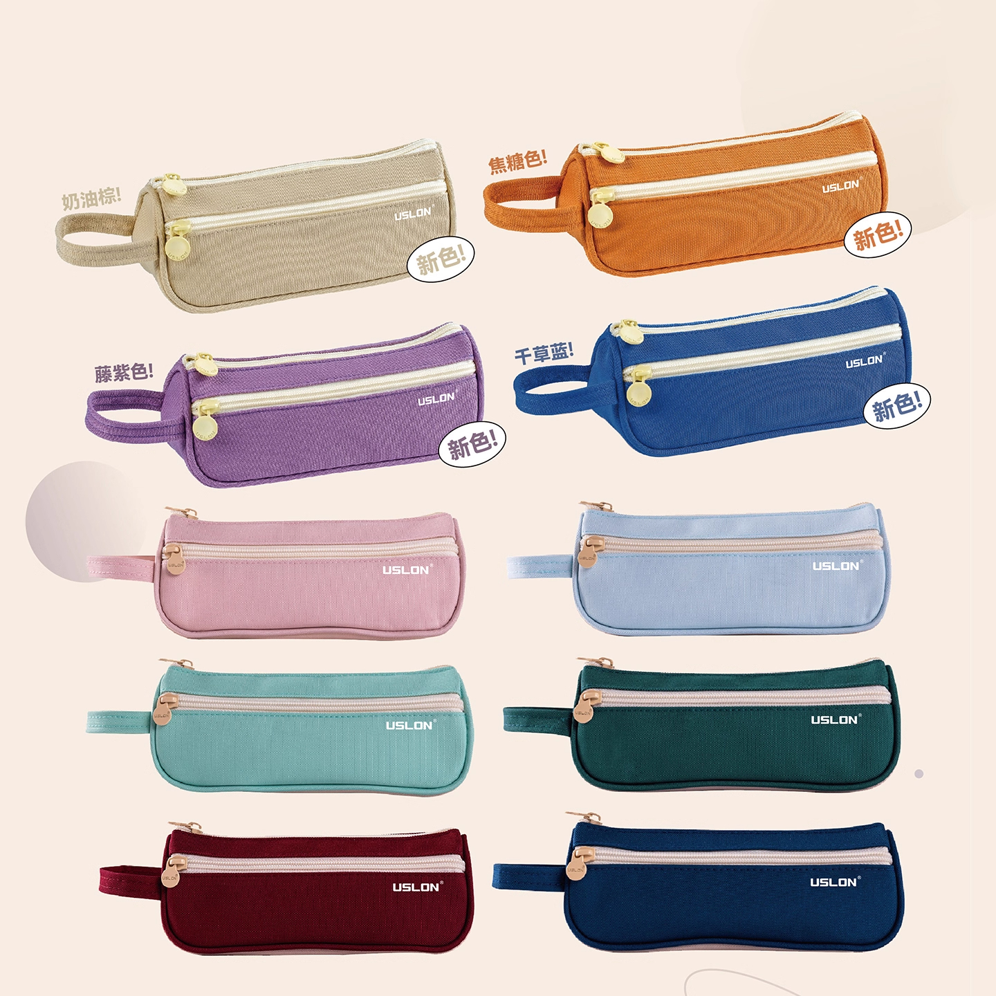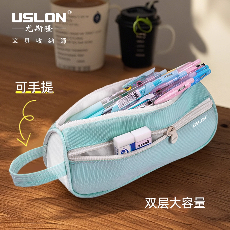 USLON尤斯隆若盐大容量文具袋可爱温柔铅笔收纳包糖果色系列多层小清新可手提风格可拆卸多功能帆布耐用