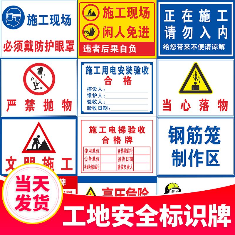 工地施工现场安全标识警告标志机械危险注意安全告知户外建筑警示禁止入内当心摔倒严谨抛物当心落物标志牌