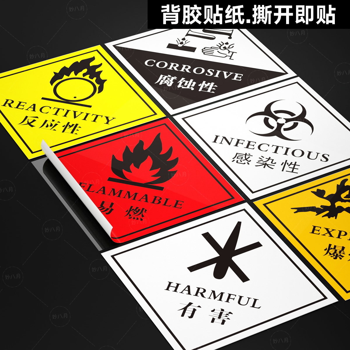 危废包装标签 危险品标识贴纸 新版危险废物标识贴腐蚀爆炸性毒性易燃反应性标签警示标志工厂车间危险标志贴