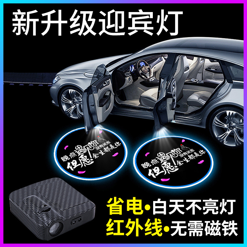 高清汽车迎宾灯开门照地灯车门镭射投影灯智能红外感应免改装车载氛围灯车内装饰用品大全摩托车电动车通用