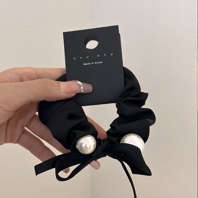 新款蝴蝶结头饰头发的韩版黑色珍珠头绳高马尾丝带扎大肠感发圈皮