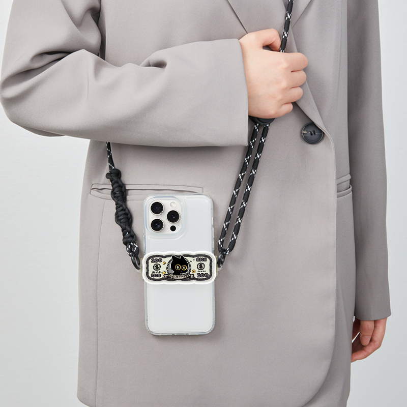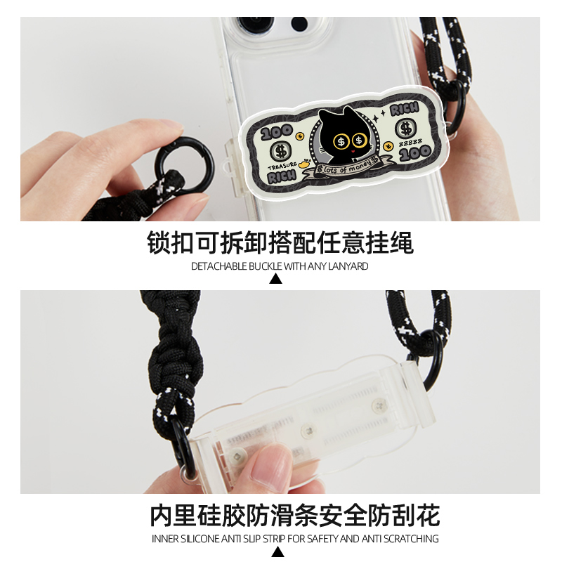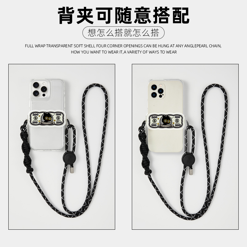 钞能力黑猫手机背夹挂绳斜挎可背通用可调节长款挂脖可爱女款创意网红爆款挂链防丢可拆卸带挂绳背带新款高级