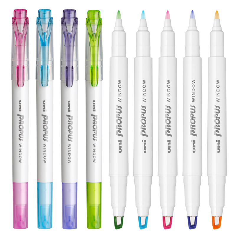 日本三菱uni荧光标记笔学生用彩色双头记号笔彩色划重点可视窗淡色系标记笔轮廓手账荧光色笔手抄报高颜值