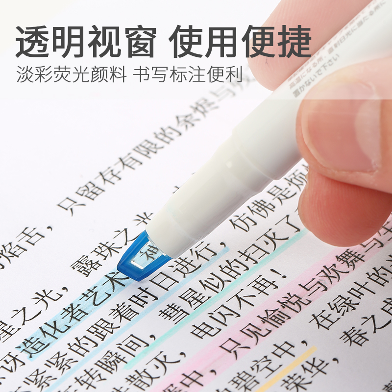 晨光按动荧光笔小学生专用划重点优品小方芯记号笔初中生专用高颜值彩色大容量笔记标记笔学习考研高中生文具