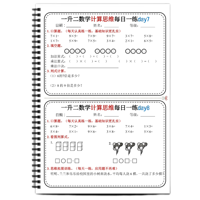 二年级上册数学计算思维每日一练18天无答案巧算简便计算数学思维方法精选奥数计算思维拔高训练